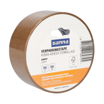 GAMMA verpakkingstape papier 50 m x 50 mm is een enkelzijdige tape voor binnengebruik waarmee je dozen en pakketten netjes dichtplakt. De tape is gemaakt van papier en kun je eenvoudig met de hand afscheuren. Je kunt er ook op schrijven wat hem handig maakt bij het labelen of organiseren van verpakkingen. Omdat hij van papier is, kun je hem samen met kartonnen dozen recyclen.