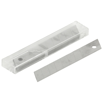 Dit GAMMA vervangmes is geschikt voor een afbreekmes met afmeting van 18mm. Is uw zakmes bot of afgebroken? Dan vervangt u dit door deze vervangende mesjes. Let erop dat deze reservemesjes 18mm breed zijn en dus alleen afbreekmessen met dezelfde afmeting kunnen vervangen. In dit pakket van GAMMA met vervangmessen voor een afbreekmes van 18mm zitten 10 reservemesjes. Met deze mesjes kunt u dus weer enige tijd vooruit en hoeft u geen nieuw stanleymes of afbreekmes aan te schaffen. Met de 10 vervangmessen voor afbreekmessen van 18mm snijdt u uiteenlopende materialen. Dus is uw afbreekmes aan vervanging toe? Vervang het mes dan door deze reservemesjes van 18mm.