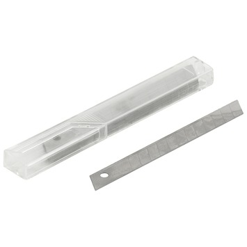 Dit GAMMA vervangmes is geschikt voor een afbreekmes met afmeting van 9mm. Is uw zakmes bot of afgebroken? Dan vervangt u dit door deze vervangende mesjes. Let erop dat deze reservemesjes 9mm breed zijn en dus alleen afbreekmessen met dezelfde afmeting kunnen vervangen. In dit pakket van GAMMA met vervangmessen voor een afbreekmes van 9mm zitten 10 reservemesjes. Met deze mesjes kunt u dus weer enige tijd vooruit en hoeft u geen nieuw stanleymes of afbreekmes aan te schaffen. Met de 10 vervangmessen voor afbreekmessen van 9mm snijdt u uiteenlopende materialen. Dus is uw afbreekmes aan vervanging toe? Vervang het mes dan door deze reservemesjes van 9mm.
