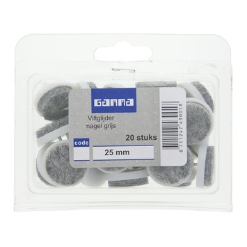 Ter bescherming van je vloer gebruik je een viltglijder. De viltglijder van GAMMA is een slimme zet om te voorkomen dat er krassen op je vloer ontstaan. Het vilt zorgt dat de meubel soepel blijft schuiven en voorkomt dus ook beschadigingen. Het is geschikt voor vlakke vloeren zoals parket of laminaat. De glijder bevat een nagel aan de onderkant waardoor deze makkelijk te monteren is. Daar bovenop zit een ronde witte kunststof dop met vilt. Die heeft een diameter van 25 mm. Het wordt verkocht in sets van 20.