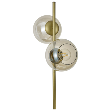 De vloerlamp Esfera van GAMMA is van messingkleurig metaal met glazen bollen waarin een E27 lamp past. De staande lamp heeft een afmeting van 150 cm in hoogte en 25 cm in diameter. De lamp beschikt over twee lichtpunten, voorzien van bolvormige lampenkappen gemaakt van glas, waarbij de onderkant van het glas open is gelaten voor een unieke uitstraling. Het aan- en uitschakelen van de lamp wordt geregeld via een schakelaar en stekker. Houd er rekening mee dat de Esfera vloerlamp niet verstelbaar is in hoogte.