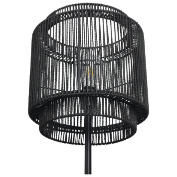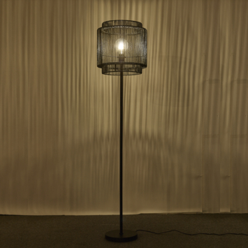 De James XL vloerlamp van GAMMA is specifiek ontworpen voor gebruik met een E27 lamp, die apart moet worden aangeschaft. Deze lamp is vervaardigd van papier en volledig in het zwart uitgevoerd. Dankzij de open onderkant van de lamp ontstaat een sfeervolle ambiance in de ruimte. Met afmetingen van 150 cm in hoogte en een diameter van 35 cm voegt deze lamp stijl en karakter toe aan de omgeving.