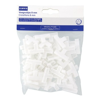 De GAMMA tegelkruisjes 8mm 75 st zijn tegelkruisjes van het GAMMA eigen merk. De tegelkruisjes zijn van kunststof en hebben een dikte van 2,5mm. Steek deze kruisjes tussen de tegels voor een correcte uitlijning en regelmatige voegen. Bij deze maat wordt de breedte van de voeg 8mm. Inhoud 75 stuks.