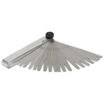 De voelermaat van GAMMA met afmetingen van 0,05mm tot 1,00mm bestaat uit 20 bladen. Daarmee meet u tussenruimtes, bijvoorbeeld ruimtes tussen de elektroden van een bougie. Ook gebruikt u de voelermaat om de klepspeling van viertaktmotoren op te meten. De voelermaat bestaat uit stalen bladen van verschillende diktes. De diktes variëren van 0,05mm tot 1,00mm. Hiermee meet u onder meer spelingen of de afstand tussen contactpunten van ontstekingen. Kortom, de GAMMA voelermaat is ideaal meetgereedschap om te gebruiken voor technische werkzaamheden, zoals autotechniek.