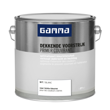 GAMMA voorstrijk wit 2,5 liter is een dekkende voorstrijk / primer voor zowel binnen- als buitentoepassingen. Deze watergedragen voorstrijk vermindert de zuiging van de ondergrond, waardoor de dekking en hechting van de verf verbeteren. Door het gebruik van deze primer voorkom je kleur- en glansverschillen in de eindlaag van je muur- of plafondverf. De sneldrogende formule zorgt ervoor dat je snel verder kunt met het schilderen van je project.