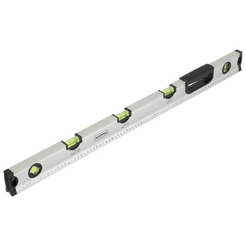 Prima multifunctionele waterpas, met een lengte van 80cm en handgreep makkelijk in de bediening.