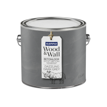 GAMMA Wood&Wall Betonlook in de kleur Dazzling Dark Grey 2,5 liter is een matte muurverf met betoneffect. Met deze verf creeër je eenvoudig een industriële look op muren en houten panelen. Breng betoneffect aan met een muurverfroller, blokkwast en een spaan. Wood&Wall Betonlook is ook verkrijgbaar in mengverf.