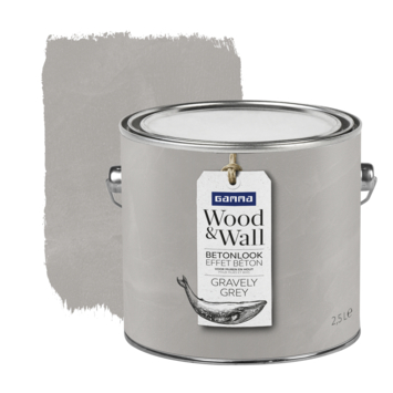 GAMMA Wood&Wall Betonlook in de kleur Gravely Grey 2,5 liter is een matte muurverf met betoneffect. Met deze verf creeër je eenvoudig een industriële look op muren en houten panelen. Breng betoneffect aan met een muurverfroller, blokkwast en een spaan. Wood&Wall Betonlook is ook verkrijgbaar in mengverf.