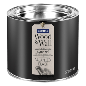GAMMA Wood&Wall Klassiek Extra Mat in de kleur balanced black 500 ml is een zeer matte krijtverf met een verfijnde uitstraling en een geheel eigen effect. Het poedermatte effect komt tot in de kleinste detail tot zijn recht. GAMMA Wood&Wall geeft je huis de cottagesfeer van de Engelse countryside.