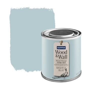 GAMMA Wood&Wall Klassiek Engels Mat in de kleur Bashful Blue 100 ml is een zeer matte krijtverf met een verfijnde uitstraling en een geheel eigen effect. Het poedermatte effect komt tot in de kleinste detail tot zijn recht. GAMMA Wood&Wall geeft uw huis de cottagesfeer van de Engelse countryside. De matte krijtverf is op acrylbasis en geschikt voor zowel binnenmuren als houten meubels. De matte krijtverf is afwasbaar, reukarm en niet vergelend. Naast de standaard beschikbare kleuren is deze verf ook te mengen in ieder gewenste kleur in de GAMMA bouwmarkt.