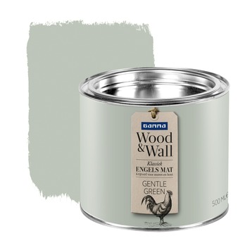 GAMMA Wood&Wall Klassiek Engels Mat in de kleur Gentle Green 500 ml is een zeer matte krijtverf met een verfijnde uitstraling en een geheel eigen effect. Het poedermatte effect komt tot in de kleinste detail tot zijn recht. GAMMA Wood&Wall geeft uw huis de cottagesfeer van de Engelse countryside. De matte krijtverf is op acrylbasis en geschikt voor zowel binnenmuren als houten meubels. De matte krijtverf is afwasbaar, reukarm en niet vergelend. Naast de standaard beschikbare kleuren is deze verf ook te mengen in ieder gewenste kleur in de GAMMA bouwmarkt.