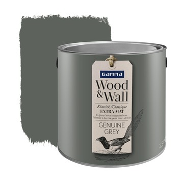 GAMMA Wood&Wall Klassiek Engels Mat in de kleur Genuine Grey 2,5 liter is een zeer matte krijtverf met een verfijnde uitstraling en een geheel eigen effect. Het poedermatte effect komt tot in de kleinste detail tot zijn recht. GAMMA Wood&Wall geeft uw huis de cottagesfeer van de Engelse countryside. De matte krijtverf is op acrylbasis en geschikt voor zowel binnenmuren als houten meubels. De matte krijtverf is afwasbaar, reukarm en niet vergelend. Naast de standaard beschikbare kleuren is deze verf ook te mengen in ieder gewenste kleur in de GAMMA bouwmarkt.