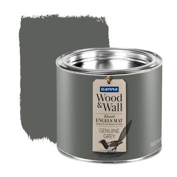 GAMMA Wood&Wall Klassiek Engels Mat in de kleur Genuine Grey 500 ml is een zeer matte krijtverf met een verfijnde uitstraling en een geheel eigen effect. Het poedermatte effect komt tot in de kleinste detail tot zijn recht. GAMMA Wood&Wall geeft uw huis de cottagesfeer van de Engelse countryside. De matte krijtverf is op acrylbasis en geschikt voor zowel binnenmuren als houten meubels. De matte krijtverf is afwasbaar, reukarm en niet vergelend. Naast de standaard beschikbare kleuren is deze verf ook te mengen in ieder gewenste kleur in de GAMMA bouwmarkt.