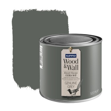 GAMMA Wood&Wall Klassiek Engels Mat in de kleur Genuine Grey 500 ml is een zeer matte krijtverf met een verfijnde uitstraling en een geheel eigen effect. Het poedermatte effect komt tot in de kleinste detail tot zijn recht. GAMMA Wood&Wall geeft uw huis de cottagesfeer van de Engelse countryside. De matte krijtverf is op acrylbasis en geschikt voor zowel binnenmuren als houten meubels. De matte krijtverf is afwasbaar, reukarm en niet vergelend. Naast de standaard beschikbare kleuren is deze verf ook te mengen in ieder gewenste kleur in de GAMMA bouwmarkt.