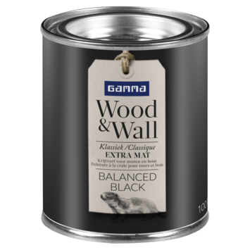 GAMMA Wood&Wall Klassiek Extra Mat kleurtester in de kleur balanced black 100 ml is een zeer matte krijtverf met een verfijnde uitstraling en een geheel eigen effect. Het poedermatte effect komt tot in de kleinste detail tot zijn recht. GAMMA Wood&Wall geeft je huis de cottagesfeer van de Engelse countryside.