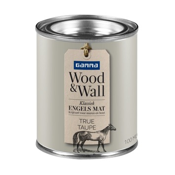 GAMMA Wood&Wall Klassiek Engels Mat in de kleur True Taupe 100 ml is een zeer matte krijtverf met een verfijnde uitstraling en een geheel eigen effect. Het poedermatte effect komt tot in de kleinste detail tot zijn recht. GAMMA Wood&Wall geeft uw huis de cottagesfeer van de Engelse countryside. De matte krijtverf is op acrylbasis en geschikt voor zowel binnenmuren als houten meubels. De matte krijtverf is afwasbaar, reukarm en niet vergelend. Naast de standaard beschikbare kleuren is deze verf ook te mengen in ieder gewenste kleur in de GAMMA bouwmarkt.