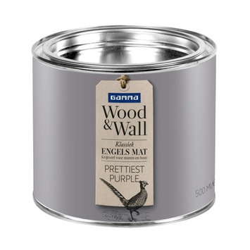 GAMMA Wood&Wall Klassiek Engels Mat in de kleur Prettiest Purple 500 ml is een zeer matte krijtverf met een verfijnde uitstraling en een geheel eigen effect. Het poedermatte effect komt tot in de kleinste detail tot zijn recht. GAMMA Wood&Wall geeft uw huis de cottagesfeer van de Engelse countryside. De matte krijtverf is op acrylbasis en geschikt voor zowel binnenmuren als houten meubels. De matte krijtverf is afwasbaar, reukarm en niet vergelend. Naast de standaard beschikbare kleuren is deze verf ook te mengen in ieder gewenste kleur in de GAMMA bouwmarkt.