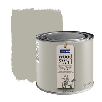 GAMMA Wood&Wall Klassiek Engels Mat in de kleur True Taupe 500 ml is een zeer matte krijtverf met een verfijnde uitstraling en een geheel eigen effect. Het poedermatte effect komt tot in de kleinste detail tot zijn recht. GAMMA Wood&Wall geeft uw huis de cottagesfeer van de Engelse countryside. De matte krijtverf is op acrylbasis en geschikt voor zowel binnenmuren als houten meubels. De matte krijtverf is afwasbaar, reukarm en niet vergelend. Naast de standaard beschikbare kleuren is deze verf ook te mengen in ieder gewenste kleur in de GAMMA bouwmarkt.