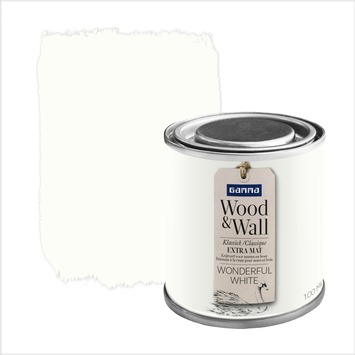 GAMMA Wood&Wall Klassiek Engels Mat in de kleur Wonderful White 100 ml is een zeer matte krijtverf met een verfijnde uitstraling en een geheel eigen effect. Het poedermatte effect komt tot in de kleinste detail tot zijn recht. GAMMA Wood&Wall geeft uw huis de cottagesfeer van de Engelse countryside. De matte krijtverf is op acrylbasis en geschikt voor zowel binnenmuren als houten meubels. De matte krijtverf is afwasbaar, reukarm en niet vergelend. Naast de standaard beschikbare kleuren is deze verf ook te mengen in ieder gewenste kleur in de GAMMA bouwmarkt.