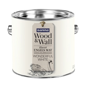 GAMMA Wood&Wall Klassiek Engels Mat in de kleur Wonderful White 2,5 liter is een zeer matte krijtverf met een verfijnde uitstraling en een geheel eigen effect. Het poedermatte effect komt tot in de kleinste detail tot zijn recht. GAMMA Wood&Wall geeft uw huis de cottagesfeer van de Engelse countryside. De matte krijtverf is op acrylbasis en geschikt voor zowel binnenmuren als houten meubels. De matte krijtverf is afwasbaar, reukarm en niet vergelend. Naast de standaard beschikbare kleuren is deze verf ook te mengen in ieder gewenste kleur in de GAMMA bouwmarkt.