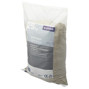 GAMMA Zilverzand 25kg gebruikt u onder meer als voegspecie voor metselwerk. Het is namelijk zuiver zand met een laag ijzergehalte en een mooie witte kleur. Daarnaast maken de fijne korrels het GAMMA Zilverzand erg geschikt als instrooizand bij kunstgras. En wist u dat zilverzand ook toe te passen is als bodemmateriaal voor volières? Het schone zand is zodoende voor meerdere gebruikstoepassingen geschikt. U koopt het GAMMA Zilverzand verpakt per zak van 25 kilogram.