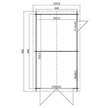 - Afm. buitenzijde (lxb): 580x340 cm