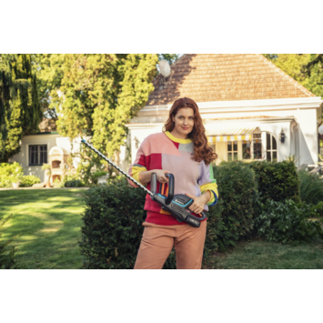 Snoerloos, handig, licht en gebruiksvriendelijk: met de GARDENA accu-heggenschaar ComfortCut 50 / 18V P4A snoeit u middelgrote heggen zonder al te veel moeite. De meegeleverde accu heeft een looptijd van maximaal 45 minuten of tot 150 vierkante meter heg. Dankzij een duidelijk zichtbare LED-indicator direct op het gereedschap bent u altijd op de hoogte van het actuele laadniveau. U weet dus wanneer het tijd is om een ¿¿pauze te nemen om hem op te laden of een andere accu aan te sluiten. Met zijn ErgoLine-handgreep met geïntegreerde schakelaar ligt de schaar met een bladlengte van 50 centimeter altijd comfortabel in de hand, in welke positie u ook werkt. Bij het knippen vlak bij de grond of langs muren, biedt de stootbescherming aan het uiteinde van het lemmet zorgt ervoor dat de lemmeten niet beschadigd raken. De bladgeometrie is perfect ontworpen zodat de snede altijd zuiver is en het werk gemakkelijk uit te voeren is - zonder onderbrekingen. We weten dat u onder de indruk zult zijn van de resultaten! Met de ComfortCut is het snoeien van heggen niet langer een vermoeiend, inspannend karwei, maar een dat in een mum van tijd kan worden gedaan. De GARDENA Accu-heggenschaar ComfortCut 50 / 18V P4A wordt geleverd als een gebruiksklare set met een oplader en een 18V POWER FOR ALL-accu. De POWER FOR ALL ALLIANCE is een van de grootste merkoverschrijdende accu-allianties van toonaangevende fabrikanten. De accu is daarom compatibel met tal van andere gereedschappen in huis en tuin - wat betekent dat u er niet meer voor elk product een hoeft te kopen. U bespaart geld en blijft te allen tijde flexibel! Passion powered by GARDENA - Tuingereedschap op accu dat u de vrijheid geeft om te creëren.