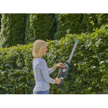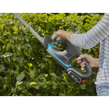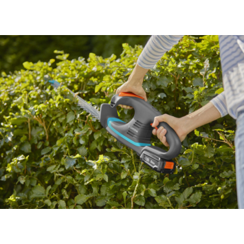 Met de extra lichte en handige Accuheggenschaar EasyCut 40/18V P4A solo van GARDENA kan je perfect je kleine en middelgrote heggen snoeien. Het lage gewicht van slechts 1,9 kg zonder accu maakt het snoeien gemakkelijk. De ErgoTec-handgreep met geïntegreerde schakelaar zorgt dat de heggenschaar ergonomisch en stevig in je handen ligt, in welke positie je hem ook gebruikt. De bladlengte is 40 cm. Dankzij de lasergesneden, geslepen bladen kan je krachtige, nauwkeurige en snelle sneden maken, met weinig moeite en zonder onderbrekingen. Wanneer je vlakbij de grond of muren snoeit, worden de bladen van de heggenschaar beschermd door de stootbescherming aan de punt van het zaagblad. Op het in de handgreep geïntegreerde led-display kan je altijd de laadstatus van de accu zien. De accu laadt snel op en heeft een lange accuduur. De GARDENA Accuheggenschaar EasyCut 40/18V P4A solo wordt geleverd zonder oplader en accu. Je kan een 18V accu van de POWER FOR ALL ALLIANCE gebruiken. De POWER FOR ALL ALLIANCE is een van de grootste merkoverschrijdende accu-allianties van toonaangevende fabrikanten, wier accu's je kan gebruiken in talrijke apparaten in huis en tuin. Zo bespaar je geld maar blijf je toch flexibel! Wil je liever het product kopen met het accusysteem? Geen probleem, dan is de Gebruiksklare set (art.-nr. 14733-20) de juiste voor jou. Na een eenvoudige online registratie biedt GARDENA een fabrieksgarantie van 3 jaar op de accuheggenschaar. Passion powered by GARDENA. EEN accusysteem voor alle taken in je tuin.