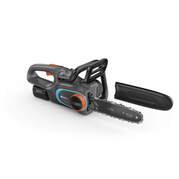 Krijg een krachtige en precieze zaagsnede met GARDENA's accu 18V kettingzaag. Uitgerust met Oregon® ketting en zaagblad aangedreven door een borstelloze motor en 18V P4A accu (apart verkrijgbaar), is deze compacte kettingzaag ideaal voor hobbytuinieren, boomverzorging en brandhout zagen. Kracht en precisie in je handen Een goede kettingzaag heeft de juiste combinatie van kracht en precisie nodig, en deze snoerloze accu kettingzaag heeft slimme functies om beide te bieden. De geluidsarme borstelloze motor op batterijen biedt een kettingsnelheid van 8 m/s om korte metten te maken met bomen, boomstammen en takken met een ¿"" ketting en 25 cm kettingblad van Oregon®, een van 's werelds meest vertrouwde merken sinds 1947, internationaal bekend om hun lange levensduur en betrouwbaarheid naast optimale zaagprestaties. Natuurlijk is ruw vermogen alleen niet genoeg om houtbewerking van hoge kwaliteit te garanderen. Deze Oregon® zaagketting is ideaal voor hobbytuiniers die de GARDENA kettingzaag PowerSaw 250/18V kleine zagen met een laag vermogen gebruiken, omdat de ketting efficiënter werkt. Het 0,043 gauge smalle zaagsnedesysteem verhoogt de efficiëntie en vraagt minder vermogen van de zaag dan standaard zaagsystemen. De trillingsarme, terugslagvrije beitelfrees is ontworpen voor hobbytuiniers en levert uitstekende prestaties. Ook geschikt voor andere kettingzaagmodellen die werken met 3/8"" low-profile steek, 1,1 mm (0,043"") gauge. Zagen met comfort en gemak Zware handzagen kunnen inspannend zijn om te gebruiken, vooral bij grotere klussen. Daarom is de GARDENA kettingzaag ergonomisch ontworpen voor het comfort van de gebruiker. De speciaal ontworpen handgreep maakt meerdere zaagtoepassingen mogelijk, van tuinieren en boomverzorging tot brandhoutvoorbereiding. Met slechts 3,8 kg is het een lichtgewicht gereedschap, ondanks de zaagkracht. En omdat hij op een accu werkt, heb je niet het lawaai, de uitstoot en de geuren van kettingzagen op benzine. Ontworpen met jouw veiligheid in gedachten Veilig zagen is onze topprioriteit. Daarom zit de 18V kettingzaag van GARDENA vol met intelligente veiligheidsfuncties die zijn ontworpen rond de meest voorkomende oorzaken van ongelukken en letsel. Het Oregon® kettingblad heeft een krachtige kettingrem om de veiligheid te handhaven als het zagen wordt onderbroken. De ¾"" ketting wordt ondersteund door een robuuste metalen kettingvanger om de ketting op zijn plaats te houden in het zeldzame geval dat hij breekt. Minimaal onderhoud Dit gereedschap is ontworpen met het oog op minimaal onderhoud. Toolless kettingspanning zorgt voor een optimale zaagsnede zonder dat je de ketting handmatig hoeft te spannen. De borstelloze motor is ontworpen om langdurig topprestaties te leveren met minimaal onderhoud. Bovendien verlengt het ingebouwde LubriTec automatisch oliesysteem de levensduur van je ketting door olie toe te dienen aan de belangrijkste onderdelen van de ketting, zodat je kunt werken met minder stilstand en onderhoud. De sterke, duurzame chromen buitenlaag zorgt voor een duurzame en scherpe zaaghoek en de geharde klinknagels helpen slijtage te verminderen en zorgen voor minder kettingaanpassingen. Deel van de POWER FOR ALL 18V ALLIANCE De POWER FOR ALL ALLIANCE is een van de grootste merkoverstijgende allianties van accu's van toonaangevende fabrikanten, verdeeld over 11 merken en voor meer dan 100 toepassingen. De accu is daarom compatibel met talloze andere gereedschappen in huis en tuin - wat betekent dat je niet meer voor elk product een accu hoeft te kopen. Je bespaart geld en blijft altijd flexibel! POWER FOR ALL accu en oplader niet inbegrepen. GARDENA biedt 3 jaar garantie na registratie op gardena.com/registration binnen 3 maanden na aankoop. Accu's en opladers (indien verkocht bij het product) zijn uitgesloten. Garantievoorwaarden op gardena.com/garantie.
