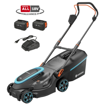 Gardena 2x18V grasmaaier Powermax P4A 37cm incl. twee 4.0Ah accu's + lader