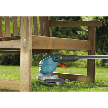De Gardena accu grastrimmer ComfortCut Li-18/23 R is perfect voor lange graskanten en lastig te bereiken plekken. Door de high-tech kunststof messen garandeerd het RotorCut snijsysteem een precies snijresultaat. De krachtige en verwisselbare Lithium-Ion batterij zorgt ervoor dat je de trimmer langdurig kan gebruiken zonder een tekort aan kracht of stroom. De status van de accu is makkelijk af te lezen door het PowerInfo scherm. De Gardena accu grastrimmer ComfortCut Li-18/23 R is voorzien van alle moderne functies. Door de telescopische arm is het super makkelijk om de trimmer aan te passen op jouw ideale werkhoogte. Combineer dit met de ergonomische grip en de Gardena accu grastrimmer ComfortCut Li-18/23 R is een genot om te gebruiken. Het afsnijden van overhangend gras is ook nog nooit zo makkelijk geweest door de 90° kantelbare snijkop. Om precisie te garanderen bij langere stukken is de trimmer voorzien van een geleiderwiel. Je bloemen en planten hoef je ook niet overin te zitten, want je klapt gewoon de ingebouwde plantenbeschermerbeugel uit en je bloemenperkje is veilig.