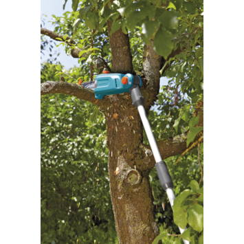De Gardena telescopische accu-snoeizaag is zeer geschikt om eenvoudig vanaf de grond te snoeien, comfortabel en zonder ladder. Door de telescopische steel, met een bereik van maximaal 4 meter kun je eenvoudig bij moeilijk bereikbare takken komen. De steel is licht van gewicht, zodat je gemakkelijk lastige plekken bereikt.