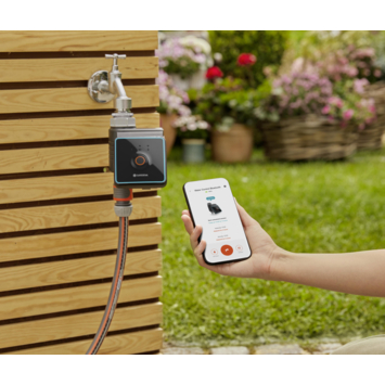 Met de watercomputer Bluetooth® van GARDENA kunt u het automatische bewateringssysteem van uw tuin eenvoudig configureren op uw smartphone of tablet. Het weerbestendige apparaat met een elegant, eenvoudig ontwerp wordt direct op de buitenkraan aangesloten. Dankzij Bluetooth® kan de watercomputer worden ingesteld binnen een straal van maximaal 10 meter, bijvoorbeeld vanuit het comfort van uw tuinstoel. Een smartphone of tablet met iOS of Android fungeert als een handige afstandsbediening. Na de installatie begeleidt de GARDENA Bluetooth App® u stap voor stap om uw smartphone te verbinden met de Water Control. Vervolgens kunt u de planningsassistent de ideale bewateringscycli voor uw planten laten voorstellen of maximaal drie afzonderlijke schema's naar wens instellen. Elk schema bestaat uit verschillende begintijden en duren en kan op verschillende dagen van de week worden herhaald. Een sproeipauze kan zo nodig worden ingesteld om ervoor te zorgen dat uw tuin niet onnodig wordt bewaterd tijdens een regenachtige week. Dit is goed voor de planten en bespaart u water. U kunt de bodemvochtigheidssensor van GARDENA aansluiten, die afzonderlijk verkrijgbaar is. Deze zorgt er automatisch voor dat bewateren wordt uitgevoerd wanneer dat nodig is en bespaart water doordat er geen getimede bewateren wordt uitgevoerd wanneer de grond al vochtig is. Drie statusleds op het bedieningspaneel geven de huidige status van de Bluetooth®-verbinding, van bewatering en van de gebruikte 9 V alkalinebatterij weer. De accu gaat een heel jaar mee. Als u uw planten buiten de bewateringscyclus wilt bewateren, kunt u de bewateren op elk gewenst moment handmatig starten en stoppen met één druk op de knop op het apparaat. Dankzij de GARDENA ‘veilig stoppen’-functie hebt u de automatische bewateren altijd onder controle. Als de accu bijna leeg is, wordt het begin van de volgende bewateringscyclus automatisch voorkomen. Hierdoor bent u er altijd van verzekerd dat uw tuin te allen tijde is beschermd tegen overmatige bewatering.