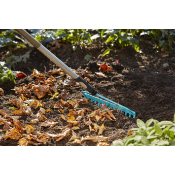 Met de GARDENA combisystem beugelhark van 36 cm werk je je tuin strak en egaal af. De grond ligt snel gelijk en los waardoor borders en plantvakken er verzorgd uitzien. Dankzij de 14 tanden en de brede werkmaat pak je grotere oppervlakken efficiënt aan zonder telkens opnieuw te moeten beginnen. De D-vormige beugel geeft extra stevigheid zodat je ook bij zwaarder werk controle houdt. De hark is gemaakt van hoogwaardig staal en voorzien van een Duroplast coating die helpt tegen corrosie. Hierdoor blijft het gereedschap sterk bij regelmatig gebruik. De aansluiting tussen hark en steel zit stevig vast wat zorgt voor een stabiel gevoel tijdens iedere beweging.