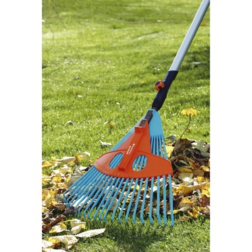 Deze Gardena bladhark combisystem 35-52cm is de verstelbare oplossing om uw tuinafval, grasresten en loof bijeen te harken. De tanden zijn 6-voudig verstelbaar, wat de werkbreedte doet variëren van 35 tot 52cm. De combisystem steel 130cm maakt van deze Gardena bladhark de complete tuinruimer met 25 jaar garantie.