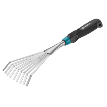 De GARDENA bladhark is ideaal om bladeren bij elkaar te vegen. De ergonomische handgreep met zacht component past perfect in de hand en de hoek aan het einde voorkomt wegglijden. De bladhark heeft een werkbreedte van 12 cm. Het blad is gemaakt van hoogwaardig staal en voorzien van een duroblast coating voor een lange levensduur.