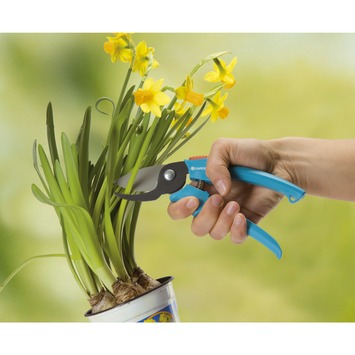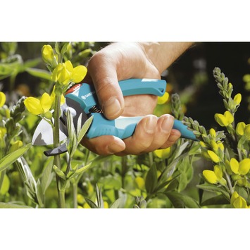 De Gardena Classic snoeischaar staal 1,8cm is een tweezijdig snijdende snoeischaar voor het knippen van bloemen en jonge loten. De antikleef coating op de messen maakt het snoeien makkelijker en houdt de schaar tevens schoon. Ook een draadsnijder is ingebouwd in deze Gardena Classic snoeischaar. Tenslotte kunt u de schaar naar behoefte in zowel een kracht- als snelsnoeipositie zetten. Een prettige snoeischaar voor takken tot 18mm.