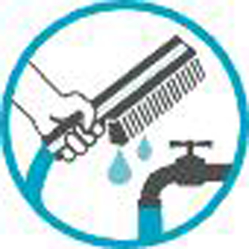 Regeling van de watertoevoer. Eenmaal aangesloten op de tuinslang kan de watertoevoer continu worden geregeld en afgesloten op het handvat van de borstel. Hierdoor hoef je tijdens het gebruik niet naar de kraan te lopen.