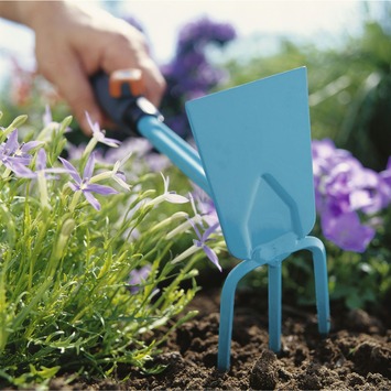 GARDENA combisystem-handhakje Veelzijdig bruikbaar tuingereedschap om grond los te maken, te beluchten en te wieden. Materiaal van hoogwaardig kwaliteitsstaal. In 3 uitvoeringen. Recht blad, 3 tanden, 6,5 cm werkbreedte. 25 jaar garantie.