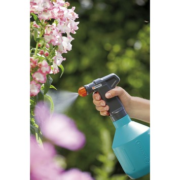 De Gardena Comfort plantenspuit turquoise met grijs en oranje 1 liter is een veelzijdige spuit voor in en om het huis. Dankzij de ergonomische handgreep ligt deze prettig in de hand. Om die veelzijdigheid te bereiken is de sproeimond traploos verstelbaar van volle straal tot fijne sproeinevel. Vanwege de grote vulopening vult u de comfort plantenspuit makkelijk onder de kraan. Om verstoppingen van de sproeimond tegen te gaan, is een filter op de aanzuigbuis geplaatst. Bovendien kunt u aan de buitenkant het vloeistofpijl aflezen. Kortom, een onmisbaar stuk gereedschap.