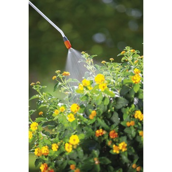 GARDENA drukspuit 5 l Voor het verzorgen van planten in de tuin. Met veiligheidsoverdrukventiel en zichtbaar vloeistofpeil. Gehoekte sproeikop traploos verstelbaar van volle straal tot fijne sproeinevel. Ergonomische D-greep voor comfortabel op druk pompen. Impulshandgreep met vastzetknop. Met schouderdraagriem. 4-kleuren etiket