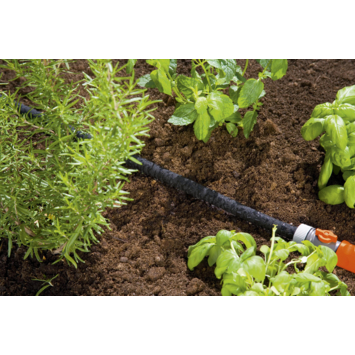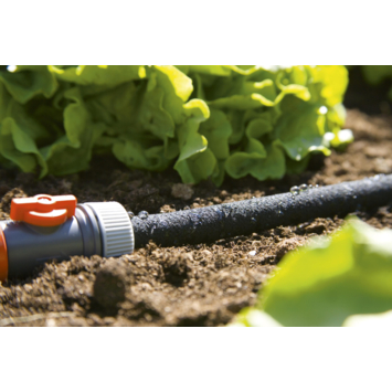De Gardena druppelslang 15 meter laat u waterbesparend en gericht rijen planten besproeien. Groot voordeel is dat deze slang al bij zeer lage waterdruk werkt. De doorstroom en drukregulering regelt u eenvoudig met het handventiel. De lengte van de Gardena druppelslang is maximaal 15 meter en laat u hiermee grote tuinen eenvoudig van water voorzien.
