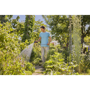 De GARDENA EcoLine sproeibroes geeft je planten een zachte, gelijkmatige waterstraal voor efficiënt bewateren. Met de ergonomische handgreep regel je de waterstroom makkelijk met één hand, zodat je precies genoeg water geeft. De sproeibroes past perfect bij elke tuinklus en is gemaakt van stevig materiaal dat lang meegaat. Hij werkt op slangen van standaard maten en blijft dankzij de uv- en vorstbestendigheid gewoon buiten staan.