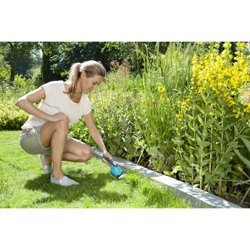 Graskanten perfect gemaaid dankzij deze compacte Gardena grasschaar. De ergonomische handgreep biedt een gebruiksvriendelijk accu-gereedschap. Een groot uitschakelknop biedt u extra veiligheid.