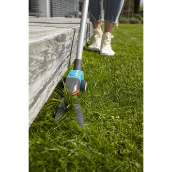 De Gardena Comfort Grasschaar maakt het knippen van grasranden eenvoudig. Door de steel heb je de mogelijkheid om rechtop te blijven staan en hou je een goede werkhouding. Met de telescopische steel kan je de lengte eenvoudig aanpassen en met de wielen is het sturen met de grasschaar eenvoudig.