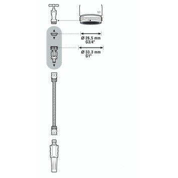 - Geschikt voor verschillende kranen:pPast op 33.3 mm (G 1) kranen met 26.5 mm (G 3/4) draad
