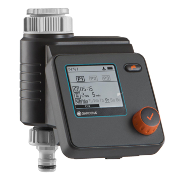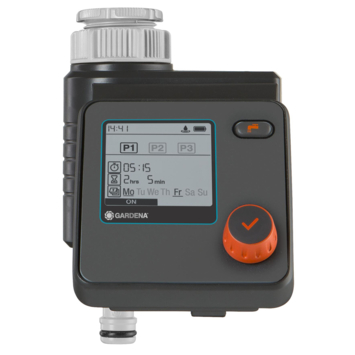 Met de Gardena besproeiingscomputer Select stel je individueel de besproeiing van je tuin in. Je kan maximaal drie verschillende planningen instellen. De computer werkt op batterijen en sluit je direct aan op de kraan. Bedien het apparaat makkelijk met de draai- en drukknop en de duidelijke display. De Gardena besproeiingscomputer Select kan in combinatie met een Gardena bodemvochtigheidssensor gebruikt worden.