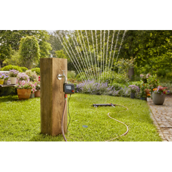 Je start met een besproeiingscomputer, waarop je een bijv. een druppelbuis kan aansluiten voor het langzaam bevochtigen van je planten. Daarnaast heb je een bodemvochtigheidssensor die je erop aan kan sluiten. Deze registreert of de grond besproeid moet worden en geeft dit door aan de computer. Zo kan je het slimme bewaterings systeem steeds meer uitbreiden voor een zorgeloos bewaterings systeem en een goed en groen onderhoud van je tuin.
