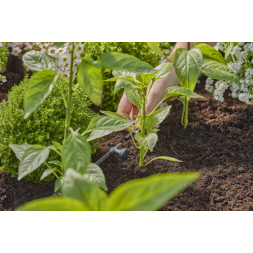 Je planten zullen een betrouwbare watertoevoer hebben dankzij de drukcompenserende seriedruppelaar 2 l/u van Gardena. In combinatie met de 4,6 mm aanvoerbuis is hij ideaal voor de bewatering van potplanten in rijen en kortere plantenrijen met vergelijkbare waterbehoeften. De seriedruppelaar is drukcompenserend. Dit betekent dat de planten dezelfde hoeveelheid water krijgen, zelfs bij hoogteverschillen op balkons of hellingen. De wateraanvoer is een constante 2 liter per uur. De Self-Clean-functie is een zelfreinigende labyrinttechnologie, die is ingebouwd in de seriedruppelaar. Het is daarom niet nodig om het Micro-Drip-System-onderdeel schoon te maken. De intuïtieve installatie is erg handig, dankzij de slimme Easy & Flexible-koppelingstechnologie. Je kan de seriedruppelaar eenvoudig aansluiten op de aanvoerbuis. Hij is net zo makkelijk weer te ontkoppelen, wat hem erg flexibel te gebruiken maakt. Micro-Drip-System. Zo zorg je goed voor je planten maar bespaar je toch water. Makkelijk en nauwkeurig bewateren, om water en tijd te besparen.