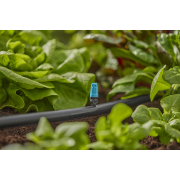 Gebruik de Sproeier voor kleine oppervlakken van GARDENA om kleine bloemperken of moestuinen met sla en zaailingen te bewateren. Voordat je je planten water geeft kan je de sproeibreedte van het Micro-Drip-System-onderdeel afzonderlijk afstellen tussen 10 en 40 cm. Je kan hem makkelijk aansluiten op de 13 mm Koppelingsbuis, maar je kan met het Montagegereedschap de Sproeier voor kleine oppervlakken ook makkelijk aansluiten op een T-stuk voor Sproeiers. Het sproeipatroon is herkenbaar dankzij het intuïtief ontwerp op de sproeikop, die duidelijk alle GARDENA Sproeiers van elkaar onderscheidt. Als de sproeier verstopt raakt, kan je de verstopping gemakkelijk verwijderen met de inbegrepen reinigingsnaald. Micro-Drip-System. Zo zorg je goed voor je planten maar bespaar je toch water. Makkelijk en nauwkeurig bewateren, om water en tijd te besparen.